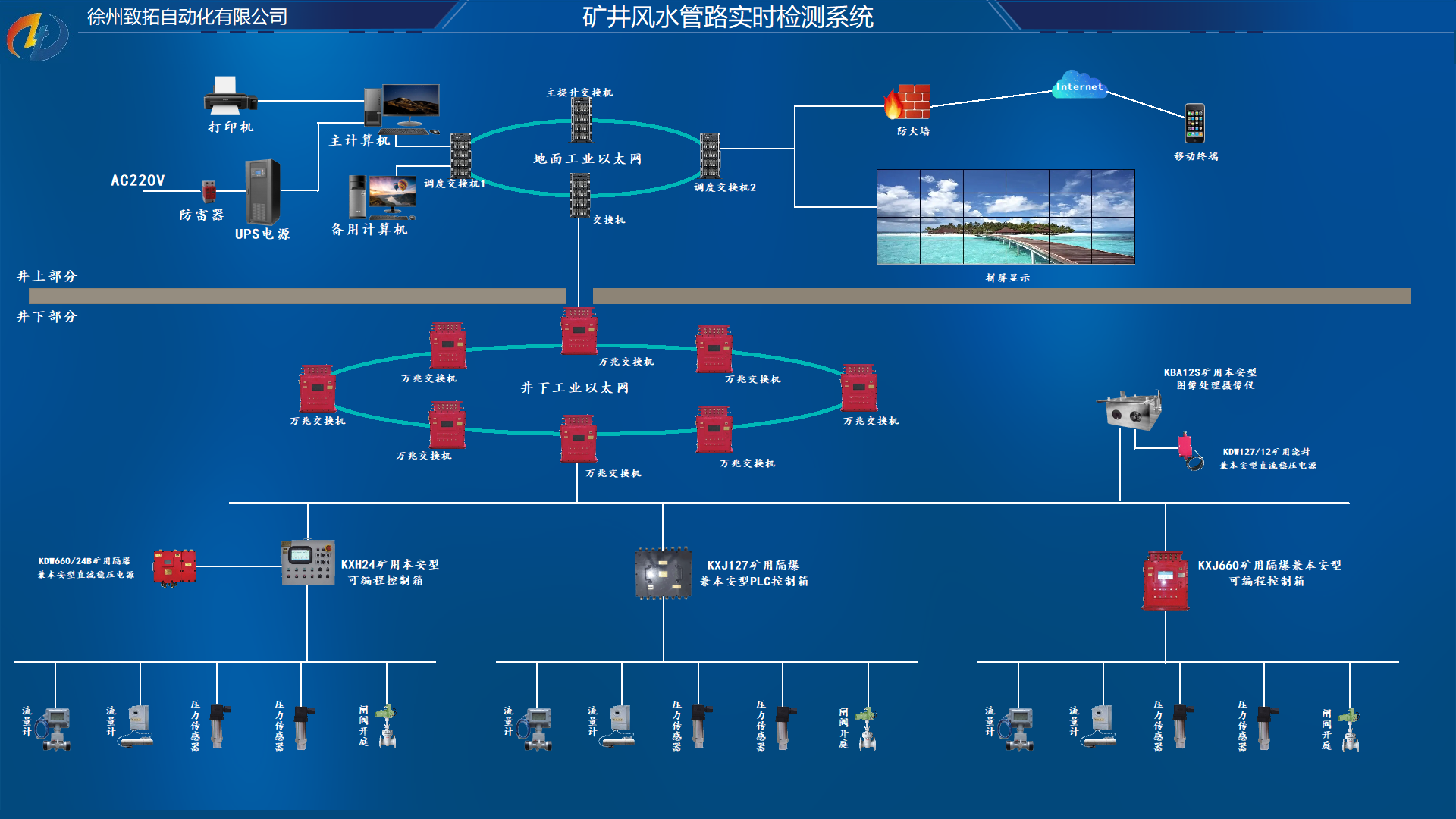 裝置一般電KXJ660礦用隔爆兼本安型可編程控制箱、KXJ127(A)礦用隔爆兼本安型可編程控制箱、KXH24礦用本安型可編程控制箱、GPD10礦用本安型壓力傳感器、GWP120礦用本安型溫度傳感器、礦用隔爆兼本安型超聲波流量計(jì)、礦用隔爆型一體式閥門電動(dòng)裝置、煤礦用電纜、光纜和其它必要設(shè)備組成。